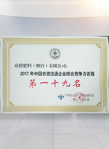 2017年中國農(nóng)資流通企業(yè)綜合競爭力百強第19名