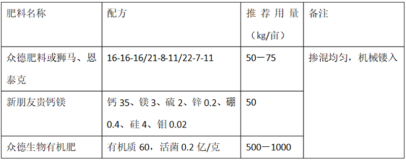 F、備注:眾德集團(tuán)科技服務(wù)中心專注作物高產(chǎn)高效栽培,由于集團(tuán)產(chǎn)品較多,國(guó)產(chǎn)進(jìn)口皆有,不同區(qū)域有不同的成熟產(chǎn)品套餐組合推薦,詳咨詢電話0535-6857828轉(zhuǎn)各作物經(jīng)理。