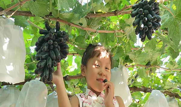以巨峰為例,畝產(chǎn)6000斤左右,單穗重0.8斤為宜,畝套袋8000個(gè)。