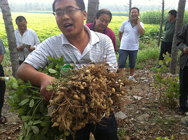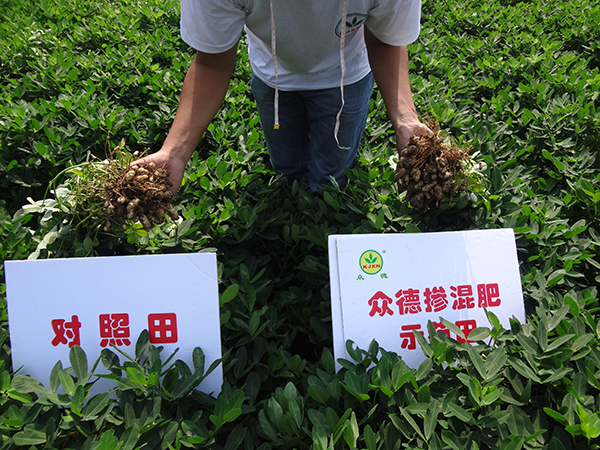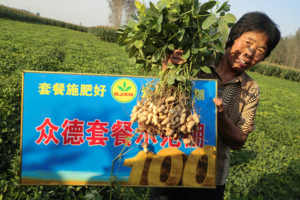 沂南縣辛集北左泉村農(nóng)民顧守武,去年用眾德(16-12-14)120斤/畝,生物有機肥80斤/畝,新朋友貴蓋美30斤,持力硼2袋,在翻地前一次性施入,到9月10號收獲期測產(chǎn)1173斤,與對照田產(chǎn)量1055斤相比,畝增產(chǎn)118斤,增產(chǎn)幅度11.2%。顧先生滿臉喜悅的說:“用眾德花生高產(chǎn)套餐方案效果非常好,歸功于眾德系列肥料原料考究,配方合理,營養(yǎng)全面,對于重茬、土壤酸化等問題障礙能夠得到有效解決,改良并活化土壤,特別是態(tài)康科、康樸系列葉面肥,能促進花生根系和葉片生長,補充硼、鉬、鈣等中微肥,提高座果率、改善品質,提高產(chǎn)量,農(nóng)民最終獲得收益。